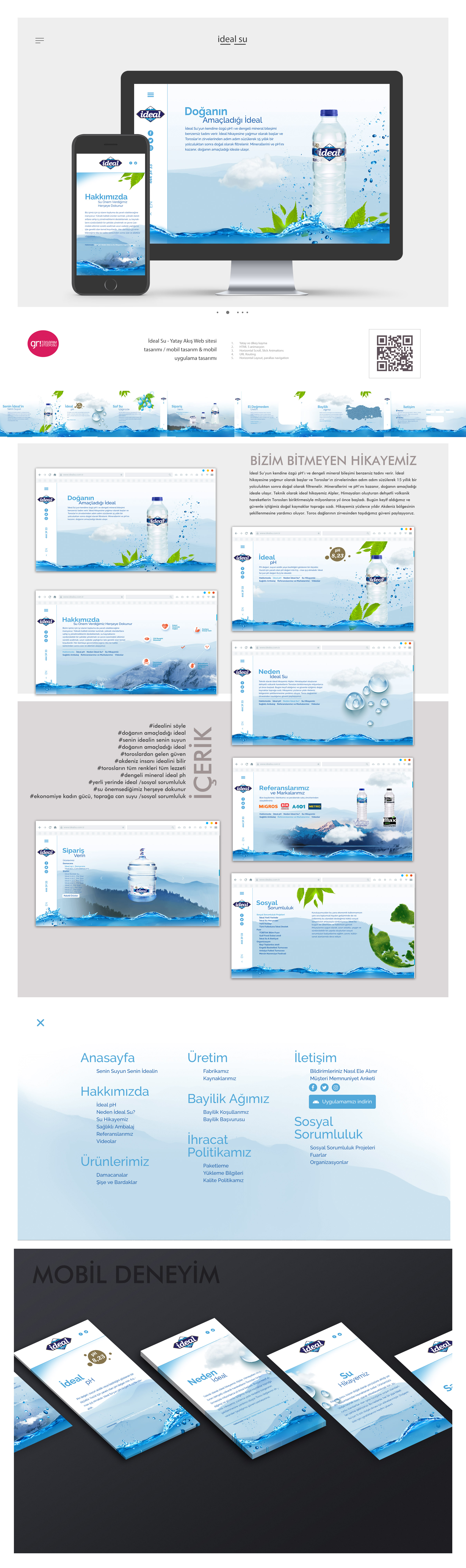We have queried the question "How should be the ideal water". Our motto was "Your ideal water". During the development, we have specified the target audience in terms of their social status. These statues were defined as B1, B2, C1, C2 which correspond to interest and interact rates of digital sources. After that, we follow a story-based model to establish emotional ties with customers and the brand. The "ideal" story starts with rain on the top of Toros mountain, it flows down to the ground. It is filtered after 15 years-long journey. It gains its minerals and pH to achieves the "ideal" that is aimed by nature. You can see the story starts with only a drop in an animated way.